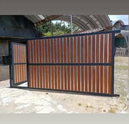 Puerta de 4 mts por 2 mts madera teka con motor apertura por celular 2 controles.