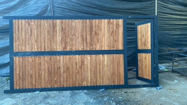 Puerta portón de 4 mts por 2 mts madera sapan con motor dos controles apertura por celular.