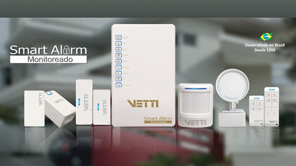 Kit de seguridad inalámbrico marca Vetti: panel, sirena y 4 sensores, con instalación en AMBA.